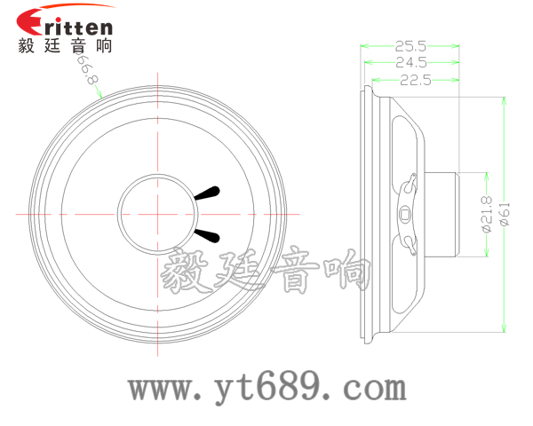2.5寸圓形鐵盆架內(nèi)磁全頻喇叭,采用了高性能的釹鐵硼永久磁,性能穩(wěn)定。