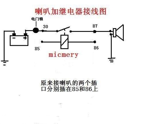 裝用單只螺旋形電喇叭或兩只盆形喇叭時,電喇叭總電流較小(<8A),一般直接由方向盤上喇叭按鈕操控。當裝用兩只螺旋形電喇叭時,電喇叭耗用電流較大(>15-20A),用按鈕直接操控,易燒蝕按鈕觸點。為避免這個缺陷,可采用喇叭繼電器操控雙音電喇叭。