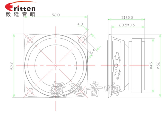 53mm方形鐵盆架外磁全頻喇叭,采用高密度鐵氧體,性能穩定,音色自然;