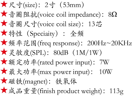 優異用于53mm7W13芯藍牙音箱喇叭以及無線桌面音箱喇叭單元上,低頻厚實、音色清晰,是客戶的優選產品。
