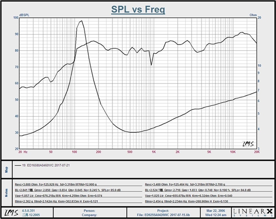 其低頻彈性非常好,下潛很深,中頻表現非常完美(平整走向),即使在大動態下也從容自如,在配合相等容積箱體時,低音非常的震撼,夠沉、夠力、速度快,中頻非常清晰悅耳。
