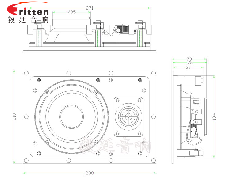 6.5寸方型外磁全頻喇叭,采用的是設(shè)計獨(dú)特的分頻器,兼具奢華時尚與實(shí)用性,三階分頻,高低音皆可調(diào);